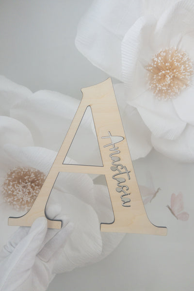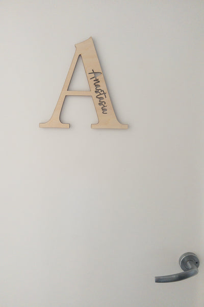 This product is laser carved on a 3mm natural quality plywood and is approx. 20cm tall (width varies according to letter).