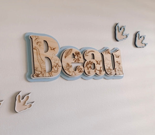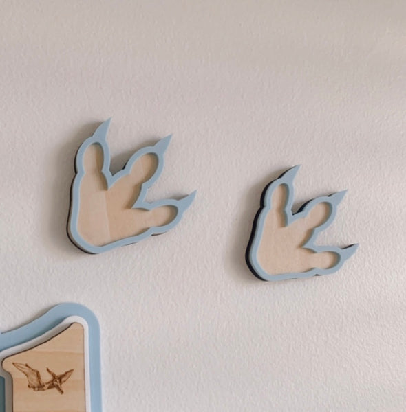 Our Dino footprint decals are a super cute addition to your Dino lovers wall! Choose from a variety of different colour themes. Pairs beautifully with ‘Etched Dino Triple layer signage‘.