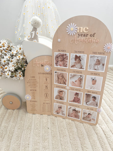 Our Birthday Photo Boards are a very special way to commemorate your little one’s first birthday! Print out a special photo from each month of their first year - each square is 8cmx8cm (we recommend Pocket Prints -https://app.pocketprints.com.au) - great as a display at their birthday party as well as a special keepsake & addition to their nursery.
