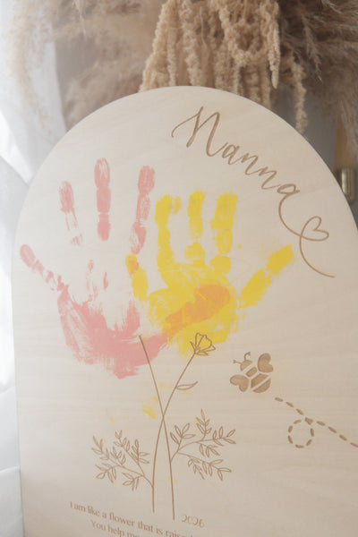 Designed to hold your little one’s handprints, this plaque transforms their tiny touch into a lasting work of art. Paired with delicate floral engraving and a soft, neutral finish, it beautifully symbolises love, growth, and the bond you share.